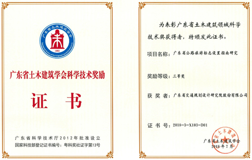 《廣東省公路旅游標志設置指南研究》榮獲三等獎,獲獎人員:徐俊德、許蔚華、謝陳峰、楊振星、唐偉。