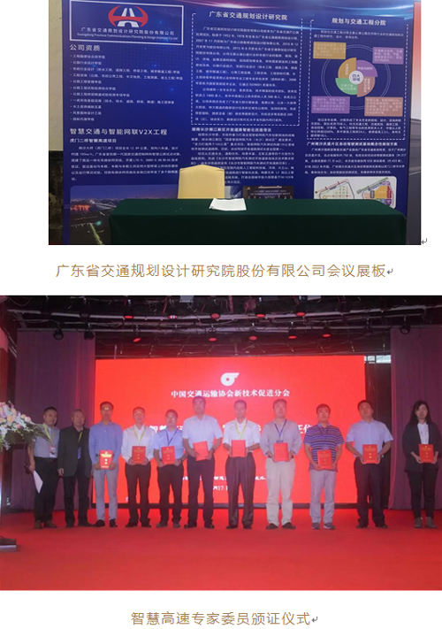 公司作為協辦單位參與了此次研討會。會議決議同意公司規劃與交通工程分院總工程師曾盛以及機電與智慧交通所所長關小杰加入中國交通運輸協會新技術促進分會“智慧高速專家組”(其中,曾盛擔任分會副主任委員,關小杰擔任分會委員),并隆重頒發證書。