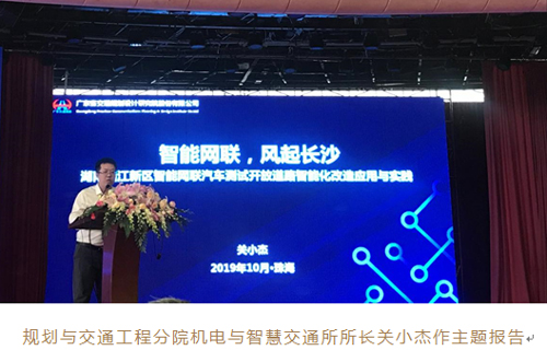 此次研討會上,關小杰代表公司作了《智能網聯,風起長沙——湖南湘江新區智能網聯汽車測試開放道路智能化改造應用與實踐》的專題報告。報告對自動駕駛的測試現狀、湖南湘江新區開放道路選線方案、V2X方案設計等方面進行了介紹,引起了與會專家領導的高度關注和認可。