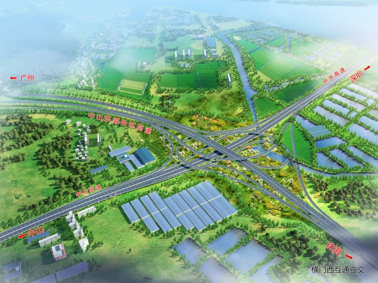 本項目全長35.343km,雙向八車道,設(shè)計速度為120km/h;全線設(shè)置橋梁33924.91m/23座(含互通立交主線橋),橋梁占比達到96%;設(shè)有大雁、高平、保家、橫門西4處樞紐互通,以及黃圃港、三角北、民眾、民眾東4處服務(wù)型互通,總投資為229.3億元。