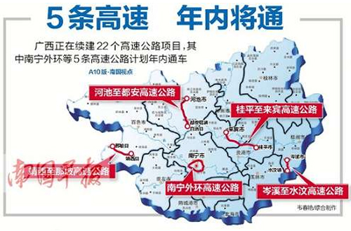 廣西:續(xù)建22個高速路項目 5條高速有望年內通車(圖)
